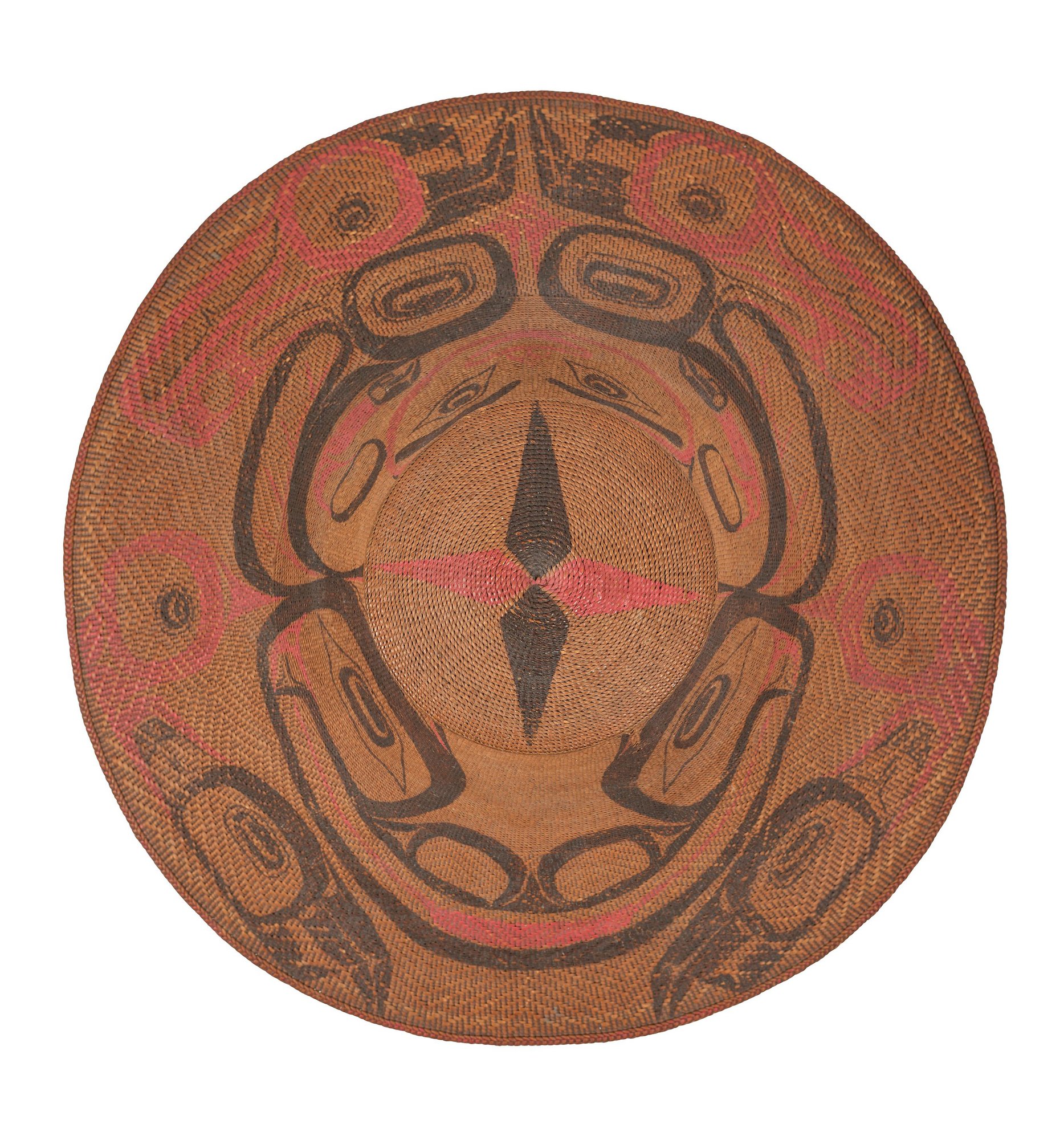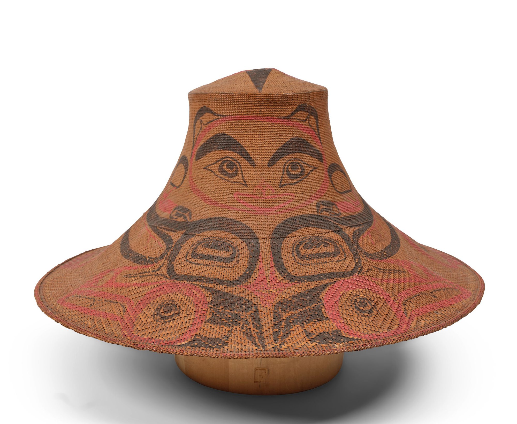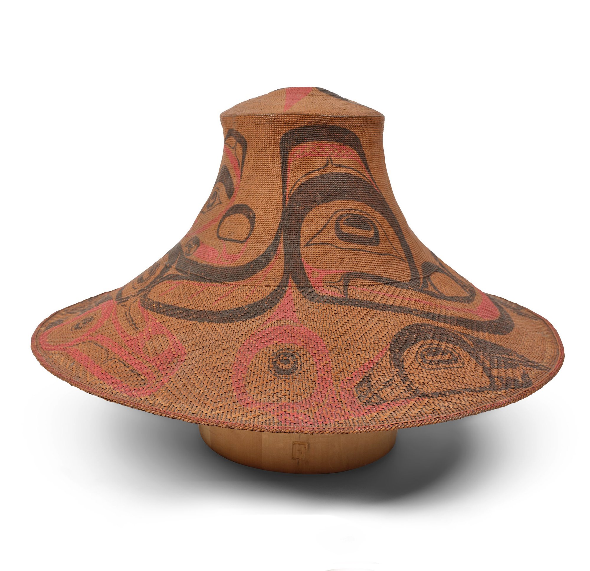 Holm, Bill and Reid, Bill, Indian Art of the Northwest Coast: A Dialogue on Craftsmanship and Aesthetics, 1975, Institute of the Arts, Rice University, Houston, pp. 162-163, fig. 64: "HOLM: Beautifully made spruce-root hat...Nice painting all around in the classic style of an animal spread around the whole hat... REID: Beautiful shape. What really makes Northwest Coast art - from canoes to spoons to hats - is the essential form. Of all the elegant headwear conceived in the world, the spruce-root hat comes close to the best."