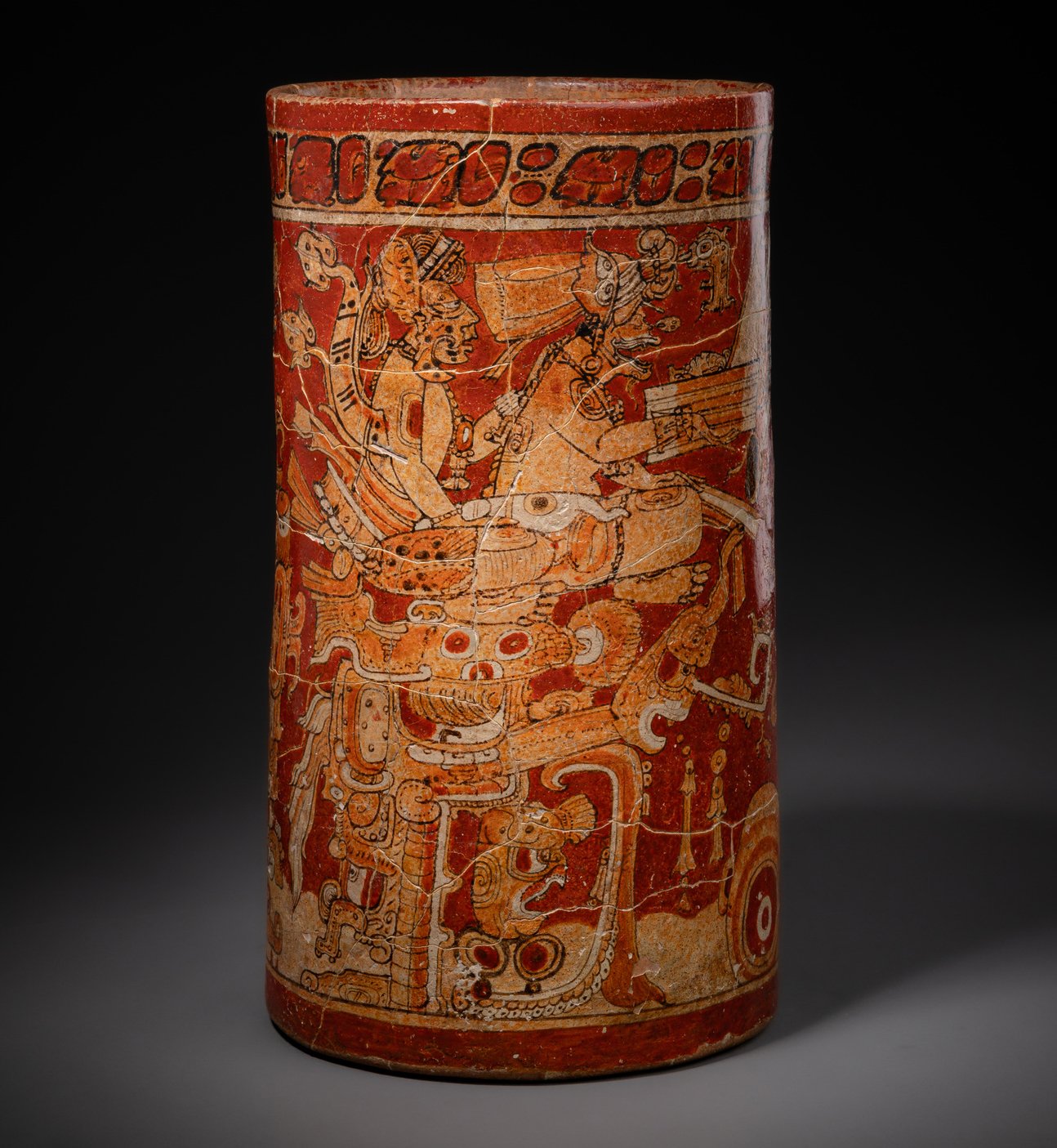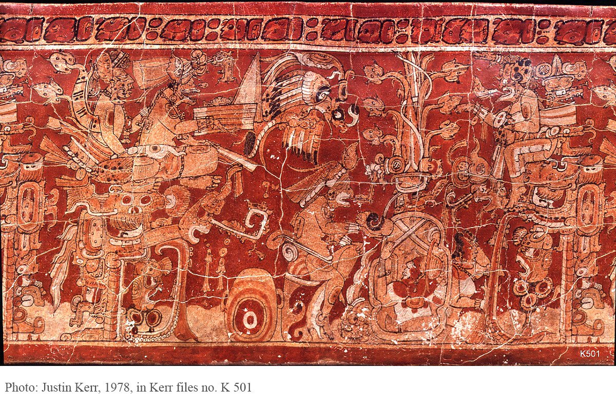 Kerr, Justin, Maya Vase Data Base, An Archive of Rollout Photographs, K 501 (1998); Coe, Michael D., Lords of the Underworld, Masterpieces of Classic Maya Ceramics, Princeton University 1978, p. 106 ff.; Robicsek, Francis, Donald M. Hales, The Maya Book of the Dead, University of Virginia Art Museum, 1981, fig. 30b